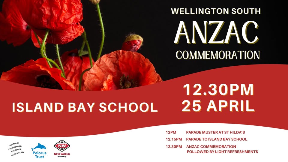 Every year on 25th April the Island Bay community gathers to remember those who have served. The remembrance begins with a parade from St Hilda’s to Island Bay School. A memorial commemorating local lives lost to wars resides at the top of the school property. The ceremony usually starts at midday.
